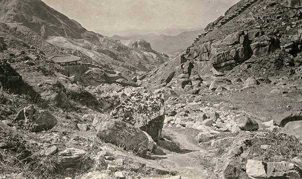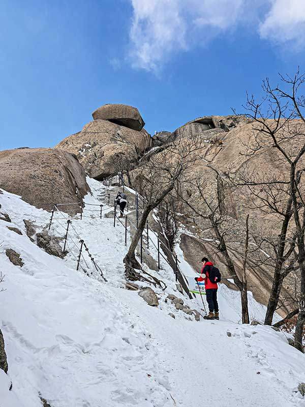 백운봉암문에서 백운대를 오르는 길목. 100년도 더 전에 현재와 마찬가지로 안전시설물이 일부 설치돼 있던 것이 흥미롭다.