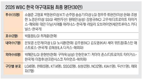 오는 3월 열리는 2026 월드베이스볼클래식(WBC)에 참가할 한국 야구 대표팀 30인의 명단이 확정됐다.