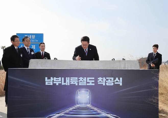 "남부내륙철도는 단순히 선로 하나를 놓는 사업이 아닙니다. 수도권에 모든 것이 집중된 '일극 체제'에서 벗어나 사람과 지역을 잇고 기회를 연결하며 지역의 성장동력을 만들어내는 국토 대전환의 시작입니다."