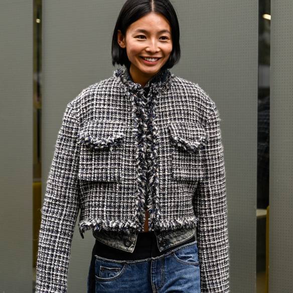 트위드 자켓과 청바지 조합의 가장 큰 매력은 무궁무진한 변주가 가능하다는 점이지 않을까요? 격식 있는 자켓에 트렌디한 스니커즈나 가벼운 플립플랍을 더해 일상에서도 무겁지 않게 매치할 수 있고, 김고은처럼 슬림한 연청바지와 브라운 컬러의 더비슈즈를 매치해 여유롭고 쿨한 분위기를 연출할 수도 있죠.