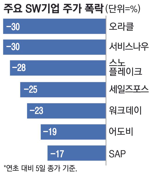 주가 하락 범위는 깊고도 넓다. 오라클, 세일즈포스, 서비스나우 등 미국을 대표하는 SaaS 기업들 주가는 올해 들어 일제히 20~30% 떨어졌다. 이들 가운데 상당수는 최근 실적 발표에서 시장 예상치를 웃도는 성적을 내놓았지만, 주가 하락세는 멈추지 않고 있다. 개별 기업의 실적과 무관하게 산업 전반의 구조 자체가 흔들릴 수 있다는 공포가 투자심리를 지배하고 있기 때문이다.
