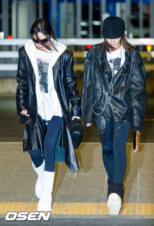 에스파 닝닝과 지젤이 출국장으로 이동하고 있다. 2026.02.06 / soul1014@osen.co.kr