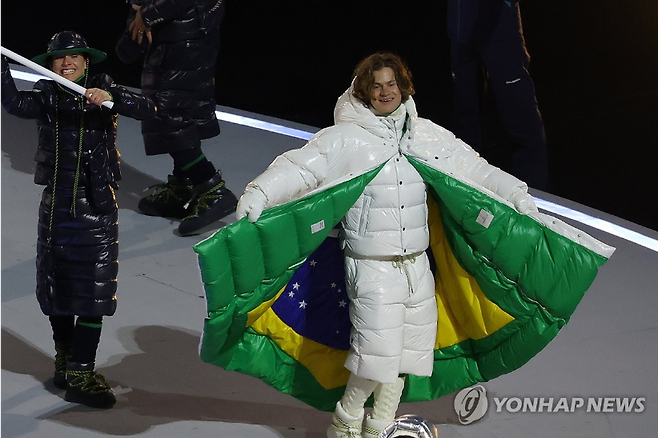 '삼바 축구'로 유명한 브라질 선수단은 명품 브랜드 몽클레어가 디자인한 선수단복을 입었다. 기수의 흰색 패딩 점퍼 안쪽은 브라질 국기로 디자인됐고, 남자 선수들은 독특한 패딩 반바지를 입어 개성을 드러냈다.