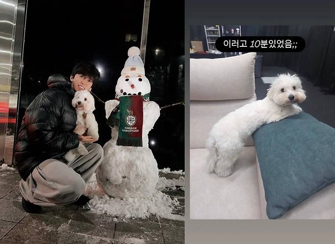 7일 임영웅은 자신의 개인 사회관계망서비스(SNS) 계정에 "이러고 10분 있었음"이라는 글과 함께 반려견 시월이의 사진을 게재했다.