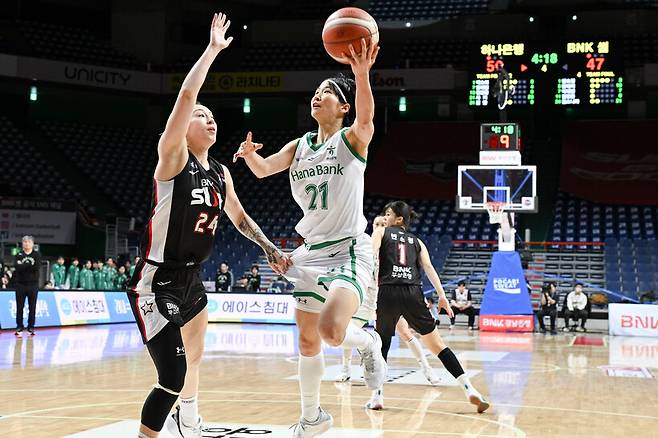 사키는 1쿼터에만 9점을 올렸고 2쿼터 종료 1분 9초를 남겨 두고 3점슛도 성공시키며, 하나은행의 전반(32-28) 기선 제압에 앞장섰다. 사키의 존재감은 연장전에도 타올랐다. 연장전 시작 15초 만에 다시 한 번 3점슛을 기록하는가 하면, 블록과 수비 리바운드도 추가하면서 BNK의 연장 득점을 2점으로 묶는 데도 힘을 보탰다.