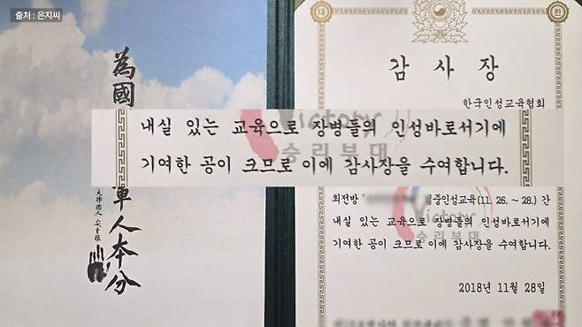 “아빠가 군인이에요. 저는 (지금은) 돌봄센터에서 교사로 일을 하고 있는데, 그전에 군부대에서 인성 교육을 했어요. 인성이잖아요. 누가 봐도 제가 먼저 잘 살아야... ”