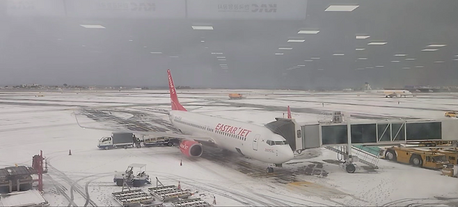 공항 측은 기상 상황을 예의주시하면서 제설작업을 진행하고 있으며, 활주로 운영 재개 시점은 기상 여건을 고려해 결정할 방침입니다.