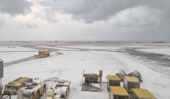 8일 한국공항공사 제주공항은 새벽 시간대 강설과 눈폭풍으로 항공기 이동지역 제설작업을 위해 활주로 운영을 중단했다가, 오전 11시부터 다시 운영에 들어갔다고 밝혔습니다.
