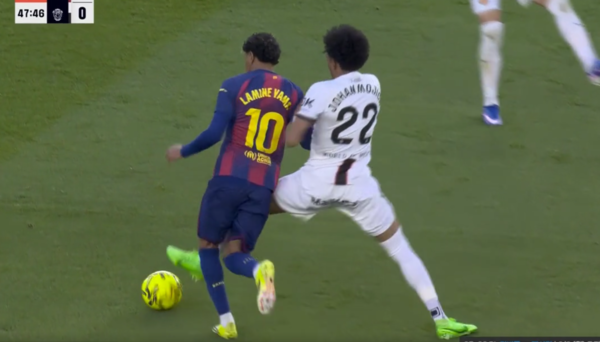 느린 장면에서도 야말의 허벅지와 모히카의 다리가 분명하게 접촉되는 모습이 포착됐다. 페널티킥이 확실해 보이는 상황이었지만, 주심은 비디오 판독(VAR)조차 없이 경기를 지속했다. 바르셀로나 벤치는 격분하며 항의했지만, 번복은 없었다.
