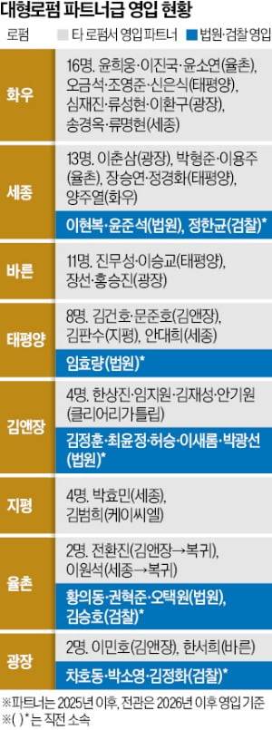 로펌들이 법원·검찰 출신 전관보다 다른 로펌 파트너 영입에 열을 올리는 이유는 명확하다. 즉시 전력 투입이 가능해 매출에 직결되기 때문이다. 한 로펌 대표는 “파트너급 인재 확보가 로펌 경쟁력의 핵심”이라며 “전관은 인맥을 활용하기까지 시간이 걸리지만, 검증된 파트너는 바로 기존 고객을 데려온다”고 강조했다.