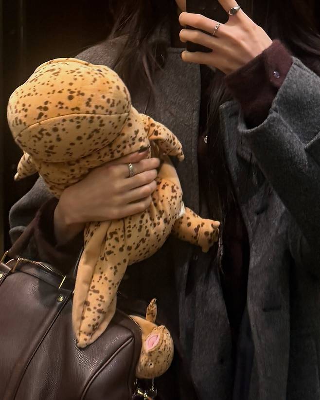 화려한 뉴욕 도심의 밤거리 풍경과 함께 귀여운 점박이 인형을 품에 안은 모습도 공개했다.
