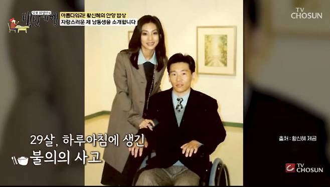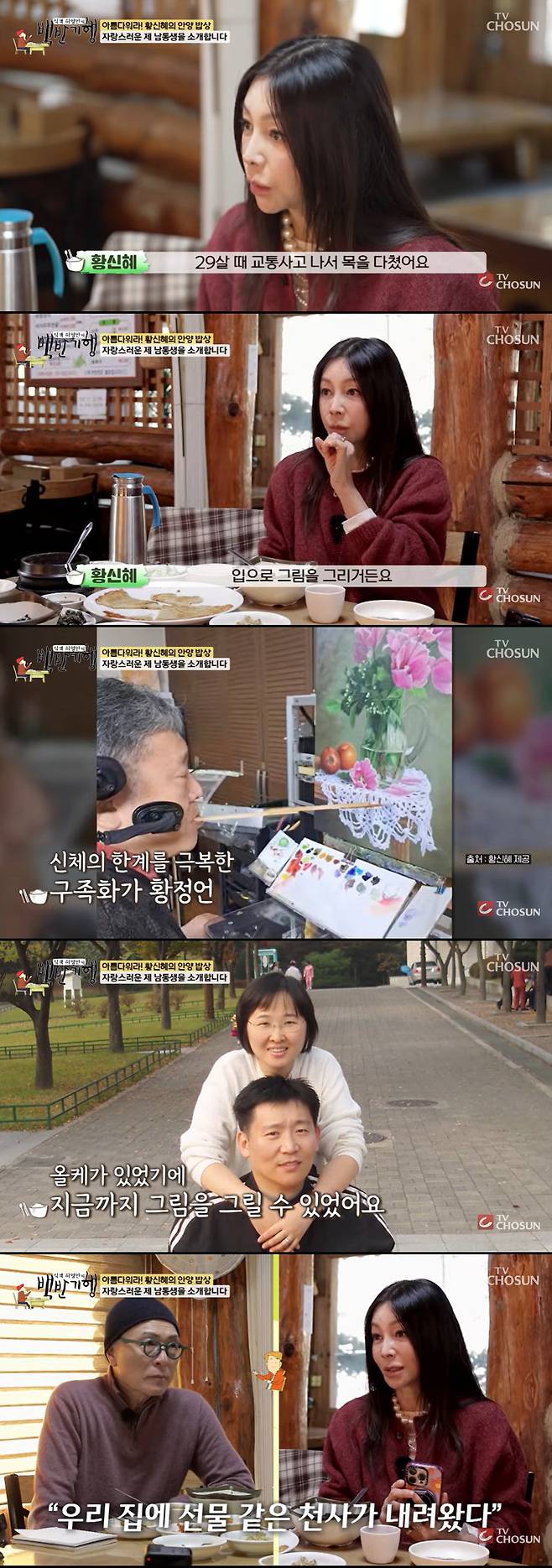 황신혜의 남동생은 손이 아닌 발, 입으로 그림을 그리는 구족화가. 황신혜는 "29살 때 교통사고가 나서 목을 다쳤다. 그래서 목 밑으로 신경이 다 없어서 입으로 그림을 그린다"고 밝혔다.