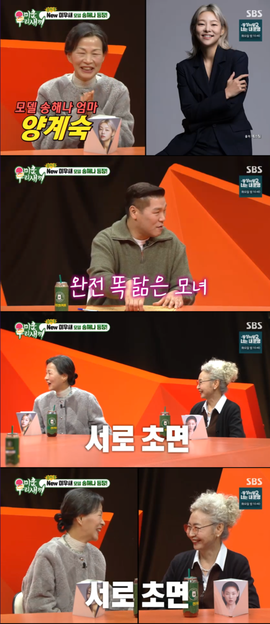8일 전파를 탄 SBS '미운 우리 새끼'(이하 '미우새')에서는 모델 송해나와 쏙 빼닮은 우월한 피지컬의 어머니가 스튜디오에 등장했다.