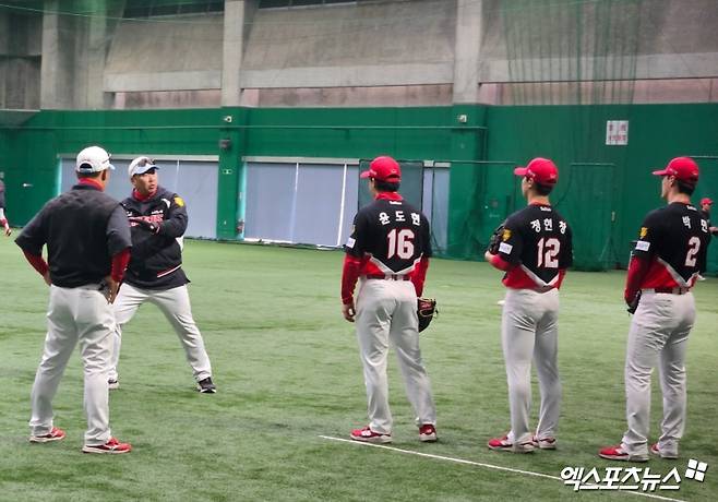네 조로 나뉘어 훈련한 선수들 중 내야수 윤도현, 박민, 정현창, 이호연은 사령탑의 지도 속에서 수비 훈련에 임했다. 네 선수는 기계에서 날아오는 빠른 타구를 처리해야 했다.