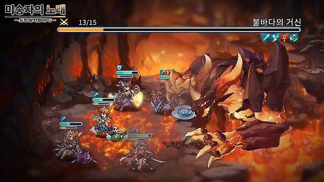미송자의 노래는 1990~2000년대 클래식 RPG의 향수를 자극하는 도트 그래픽에 현대적인 방치형 시스템을 결합한 작품이다.
