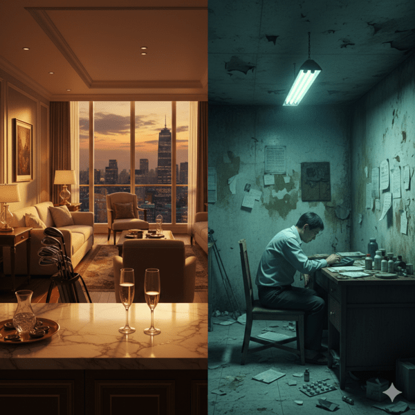 박 씨가 파열된 어깨 통증을 진통제로 누르며 공장 라인에 설 때, 서울 송파구 잠실의 한 초고가 주상복합 펜트하우스에는 부드러운 아침 햇살이 비친다. 897억 원대 코인 사기 혐의로 재판을 받고 있는 이희진 씨 거처다. 시세 70억 원을 호가하는 이 90평대 집에서 창밖으로는 롯데월드타워 전경이 비친다. 그의 두 자녀는 매달 약 200만 원 교육비를 내는 유명 영어유치원에 다닌다고 전해진다.