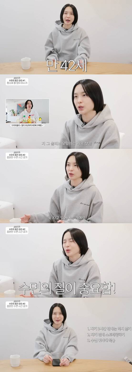 김수미는 지난 5일 자신의 유튜브 채널에 '44살 언니가 알려주는 하루라도 어릴 때 하면 더 좋은 동안 습관'이라는 제목의 영상을 올렸다.
