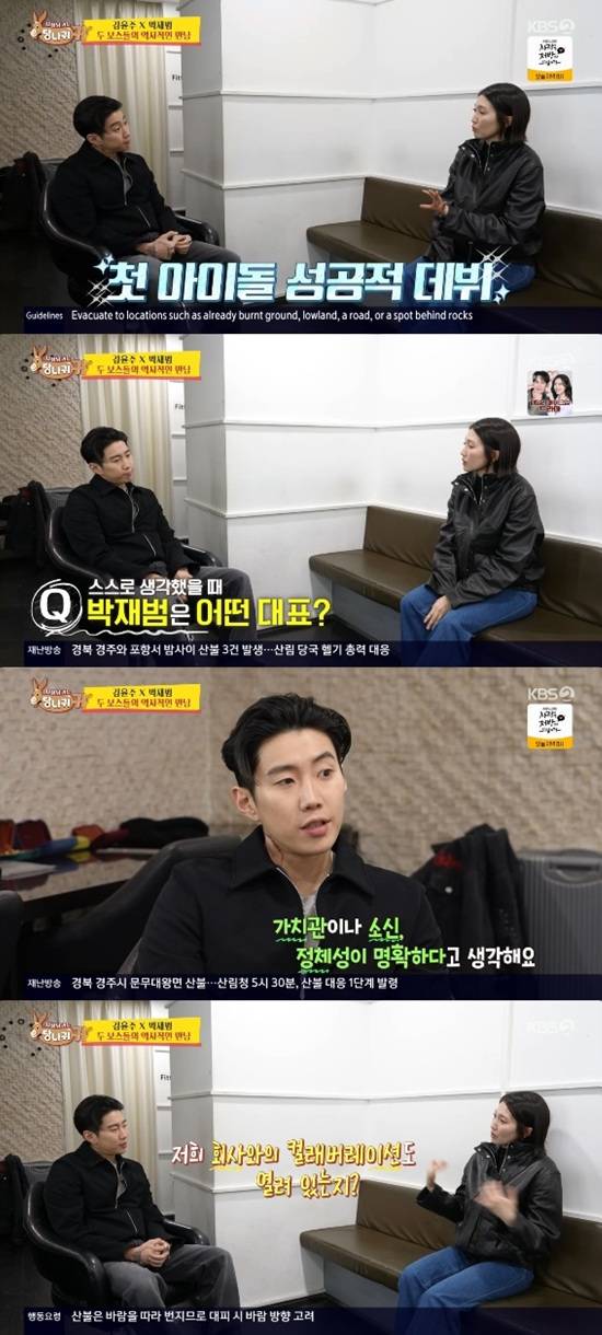 김윤주는 최근 아이돌 그룹 롱샷을 데뷔시킨 박재범의 회사 운영 방식을 궁금해 했다.