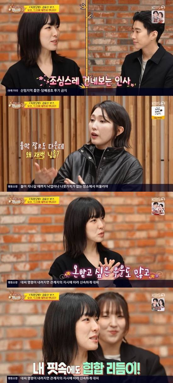 이날 김윤주는 요조가 원하는 컬래버 상대인 박재범을 섭외하기 위해 박재범의 '더 시즌즈' 녹화 대기실을 직접 찾아갔다.