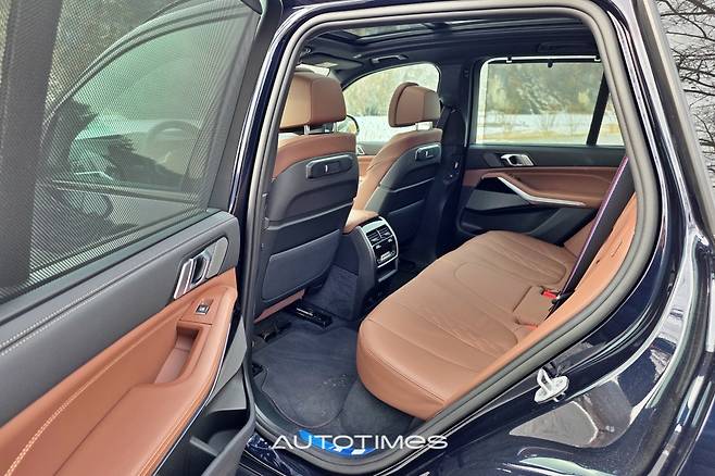 스티어링 휠은 적당한 크기를 바탕으로 조작감이 우수하고 도어패널 역시 기존 X5와 동일하다. 메리노 천연 가죽 시트는 두툼하며 면적이 상당하다. 덩치가 큰 성인이 앉아도 전혀 불만이 없을 듯하다. 2열도 동일한 느낌을 받을 수 있다. 차의 급을 고려했을 때 공간은 전혀 부족함이 없고 시트 포지션이 조금 높아서 시야도 잘 나온다.