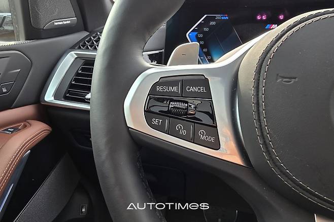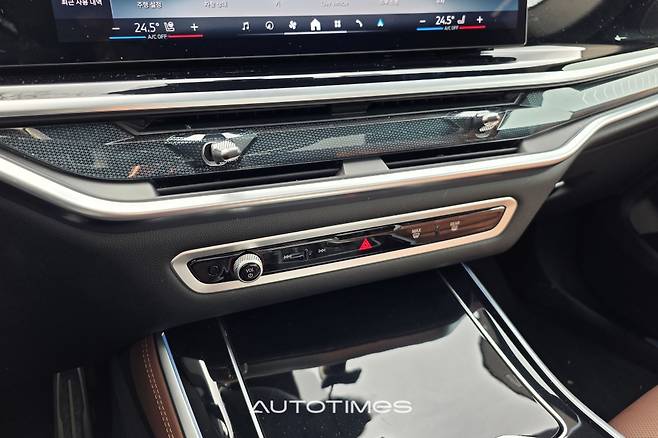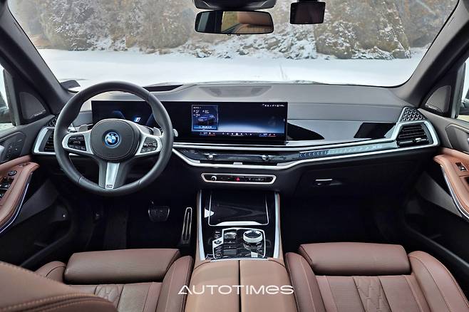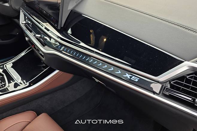 공조장치마저 전부 화면 안에서 조작하다 보니 기존 물리 버튼은 깔끔하게 삭제했다. 빈 자리를 감각적인 조형 요소로만 꾸며 넣었다. 송풍구 역시 누가 알려주지 않으면 쉽게 찾기 힘들 정도로 디자인 완성도가 높다. 심지어 조수석 대시보드 쪽에는 별도의 X5 레터링과 조명까지 멋을 더한다.
