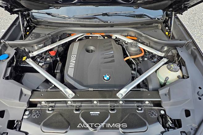 BMW X5 플러그인 하이브리드의 정확한 트림명은 50e이다. 6기통 3.0 가솔린 터보 엔진과 전기모터, 배터리 조합으로 움직이며 최고출력은 489마력에 이른다. 심지어 부스트 모드를 활성화시키면 순간 500마력을 뛰어넘는다. 최대토크 역시 71.4㎏∙m를 발휘하고 정지 상태에서부터 시속 100㎞까지 가속 시간은 고작 4.8초면 끝난다. 차의 덩치와 무게를 감안하면 매우 놀라운 숫자들의 연속이다.