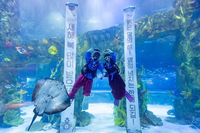 연휴 기간에는 아기 펭귄이 전용 유모차를 타고 이동하는 모습을 가까이에서 볼 수 있는 프로그램도 운영된다. 극지방존에는 한복을 입은 눈사람 조형물이 설치돼 관람 포인트를 더한다. 2026년 새롭게 합류한 카피바라를 주제로 한 생태설명회와 먹이 체험 프로그램도 함께 마련됐다.