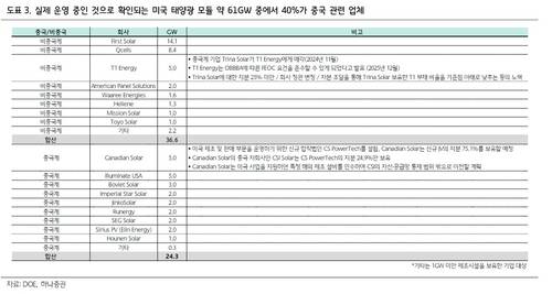 한 업계 관계자는 "미국내 태양광 모듈을 생산하는 글로벌 업체 중에 10위권내 대다수가 중국계이며, 미국과 중국을 제외하면 국내에서는 한화솔루션이 유일할 것"이라고 말했다.