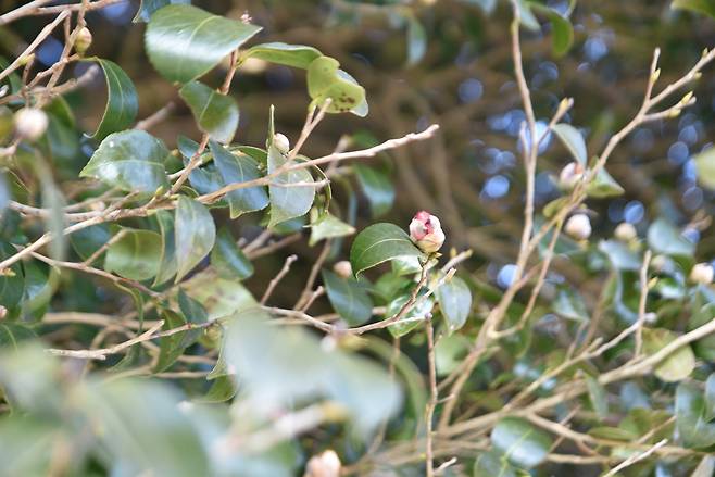 ▲ 선운사 동백나무에 꽃망울이 달렸다