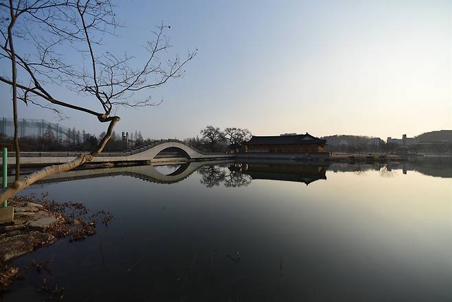 전주에 예약한 호텔에 도착해 보니 바로 옆에 덕진공원이 있고, 호수가 제법 그럴듯해 보였다. 한옥마을로 가기 전에 공원을 한 바퀴 둘러보기로 했다. 생각보다 풍경이 좋아 마음에 들었다. 호수 가운데 도서관으로 건너는 다리 왼쪽은 연으로 가득하니 연꽃이 필 무렵이라면 더없이 좋을 것 같다. 하지만 한옥마을에 도착했을 때는 이미 경기전과 전동성당의 문이 닫힌 뒤였다. 밤에는 문을 닫는다는 걸 미리 생각해야 했는데, 덕진공원을 먼저 둘러본 것이 아쉬운 선택이다.