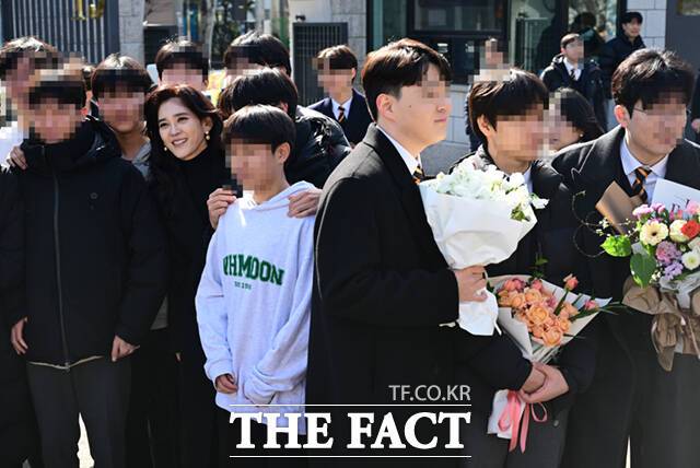 [더팩트ㅣ이새롬 기자] 이부진 호텔신라 사장이 9일 오전 서울 강남구 휘문고등학교에서 열린 아들 임동현 군의 졸업식에 참석해 기념사진을 촬영하고 있다.
