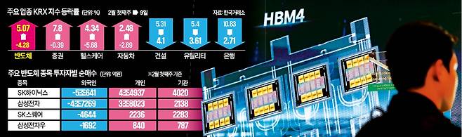외국인은 이달 첫째주 5거래일간 삼성전자(-4조7269억원), 삼성전자 우선주(-1692억원), SK하이닉스(-5조641억원), SK스퀘어(-4644억원) 등 주요 반도체 종목 4개를 10조원 넘게 순매도했다.