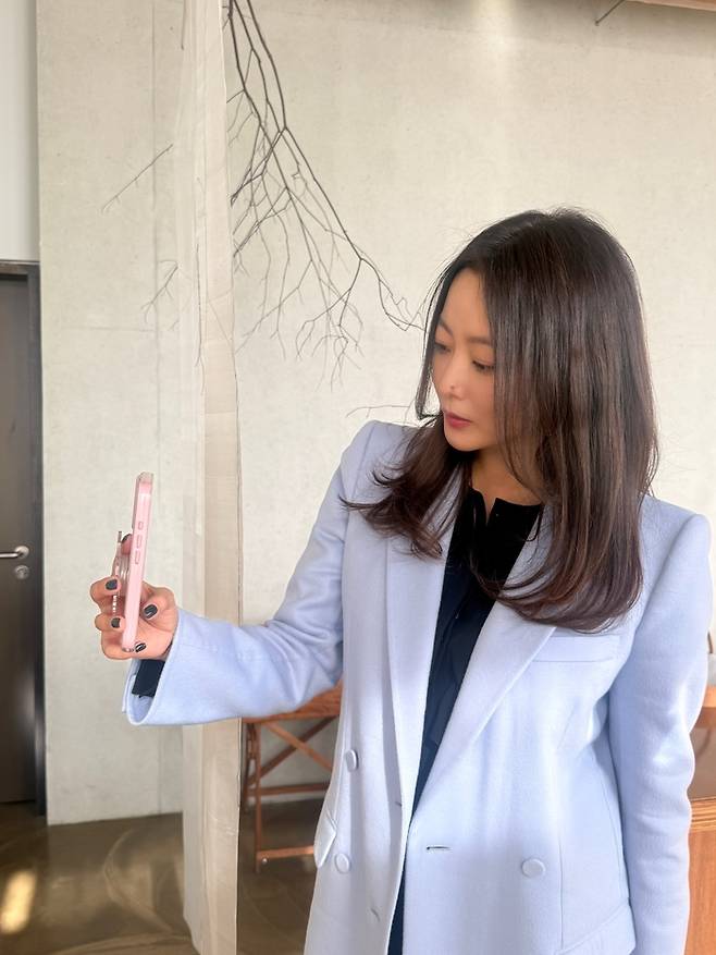 공개된 사진 속 김희선은 성북동의 한 카페에서 여유로운 시간을 보내고 있는 모습이다.