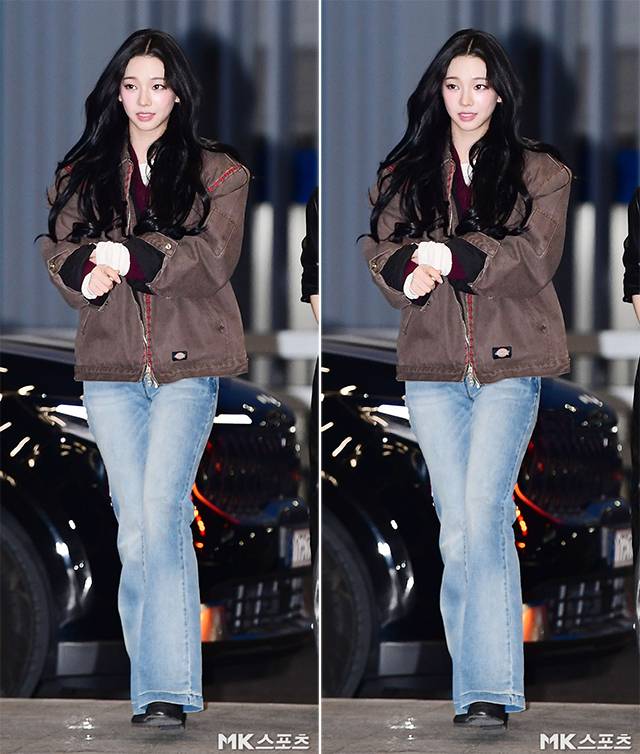 이날 출국길에서 카리나는 버건디 베스트에 브라운 재킷과 데님 팬츠를 매치해 캐주얼하고 편안한 공항 패션을 선보여 공항에 모인 팬들과 취재진의 플래시 세례를 받았습니다.