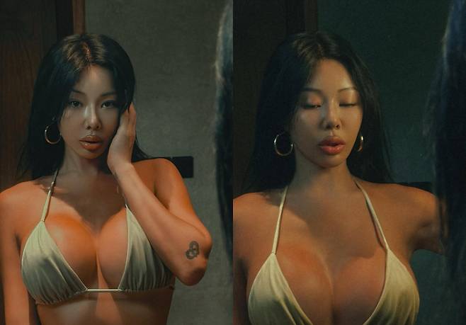특히 군살 없는 탄탄한 바디라인과 볼륨감 넘치는 몸매, 그리고 시크한 표정과 카리스마 있는 눈빛이 어우러지며 화보를 방불케 하는 비주얼을 완성했다. 자연스러운 메이크업과 긴 생머리 스타일링 역시 섹시하면서도 고급스러운 분위기를 더했다.