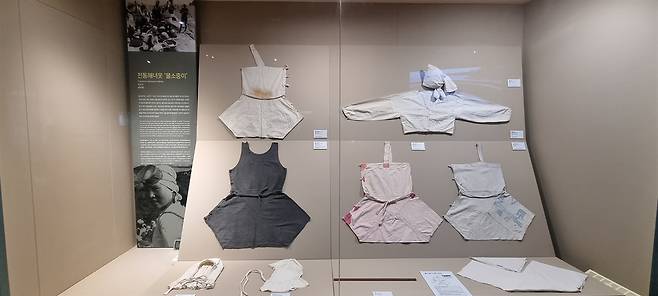| ▲ 해녀박물관의 제2전시실 박물관에 전시된 해녀의 물옷에는 기증자의 실명이 표시되어 있다. |