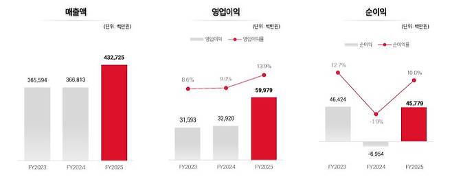 네오위즈는 연결 재무제표 기준 2025년 연간 매출 4327억 원, 영업이익 600억 원, 당기순이익 458억 원을 기록했다고 밝혔다.