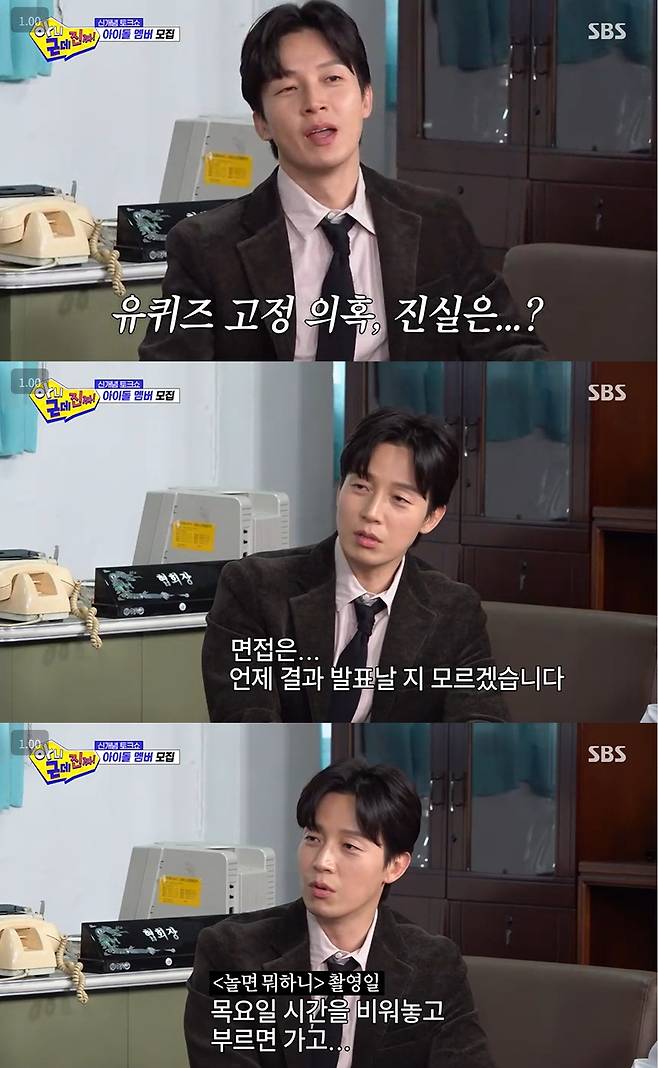 카이는 "허경환이 얼마 전에 유퀴즈' 대국민 면접 보지 않았나"라고 물었고, 멤버들은 "아직 안 됐나", "고정 아니냐"고 궁금증을 드러냈다.
