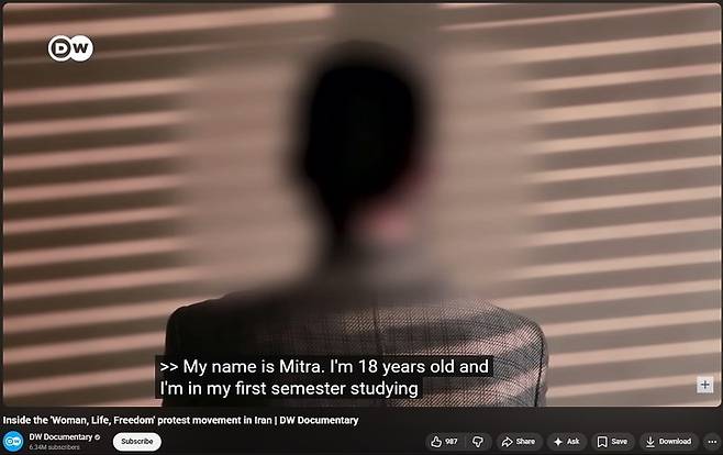 ▲ 다큐멘터리 영화 〈Inside the ‘Woman, Life, Freedom’ protest movement in Iran〉의 초반부, 이란 히잡 시위의 도화선이 된 지나 마흐사(Jina Mahsa Amini)의 이야기가 언급된다. (출처: DW Documentary 유튜브) |