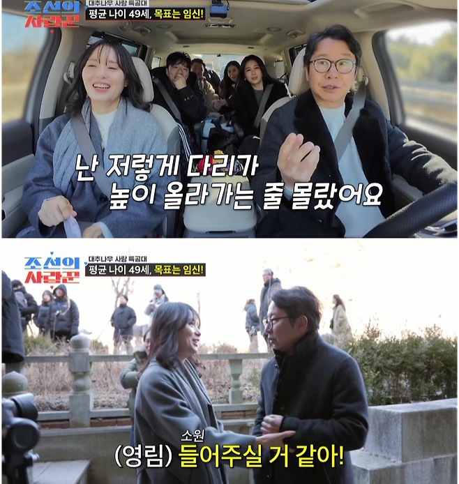 9일 밤 10시 방송된 TV CHOSUN '조선의 사랑꾼'에서는 심현섭·정영림, 윤정수·원진서, 배기성·이은비가 2세를 위한 소망을 품고 경주로 향하는 모습이 그려졌다.