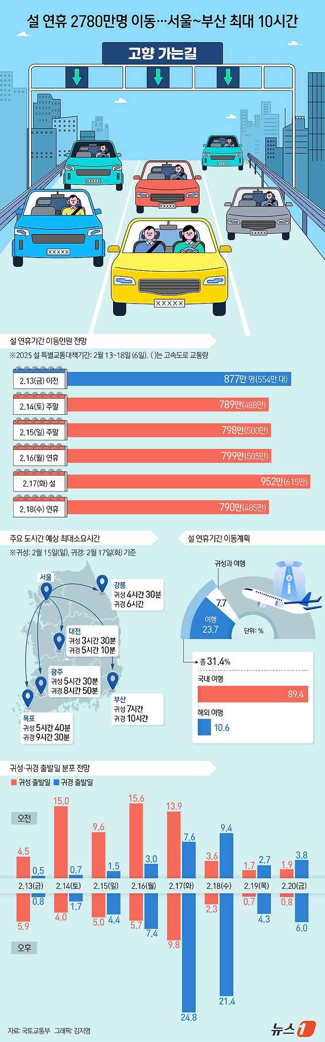 [오늘의 그래픽] 설 연휴 2780만명 이동…서울~부산 최대 10시간
