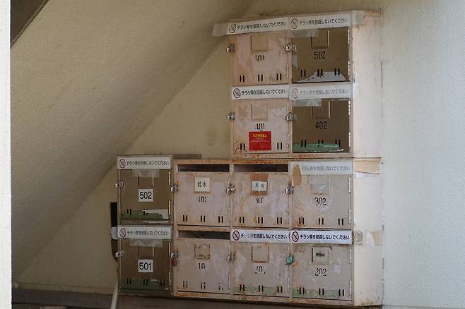 | ▲ 2026년 2월 1일 일본 효고현 고베시 니시구의 시영 사카에주택단지 1층 우편함 다수가 막혀있다. |
