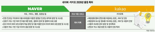 네이버는 지도·커머스·동영상 등 서비스를 위한 기술, 카카오는 메신저를 고도화하기 위한 기술 특허를 주로 출원했다.