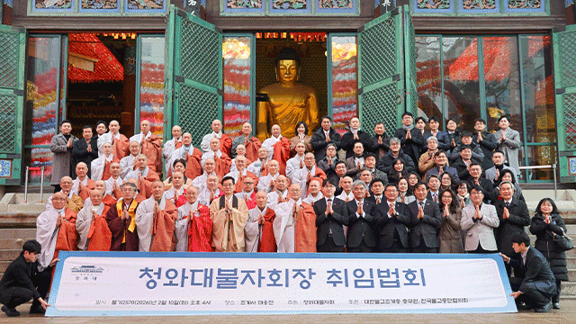 청와대 불교 신자들로 구성된 ‘청와대 불자회’(청불회)가 오늘(10일) 서울 조계사 대웅전에서 불자회장 취임 법회를 열고 공식 출범을 알렸습니다.