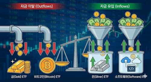 (서울=연합인포맥스) 이장원 선임기자 = 지난주 미국 ETF(상장지수펀드) 시장에서 투자자들은 폭락한 은과 소프트웨어 섹터를 저가에 주워 담은 반면, 금과 비트코인에서는 발을 뺐다.