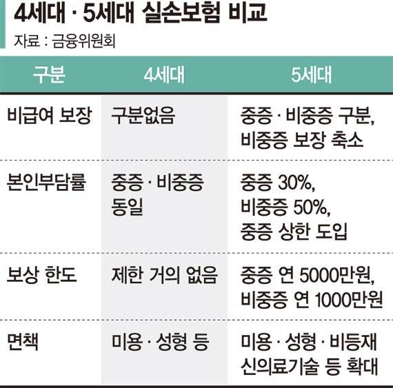 금융당국과 보험업계가 내놓은 '5세대 실손보험'은 보장을 일부 축소하는 대신, 보험료를 낮추는 것이 핵심이다.