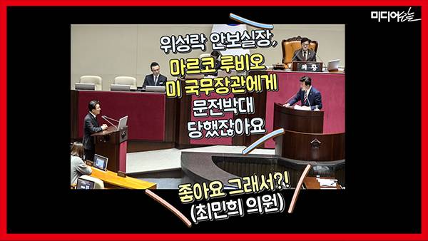 윤영석 의원이 또 “며칠 전에 며칠 전에 지금 우리 통상 본부장이 문전박대당했지 않습니까?”라고 하자, 최민희 의원은 “그래서 고소하냐고?!”라고 응수했다. 듣고 있던 김민석 총리는 “한미 간에 지금 의원님께서 파악하고 계시지 않은 많은 대화의 채널이 있다. 제가 확실하게 말씀드린다”고 단언했다.