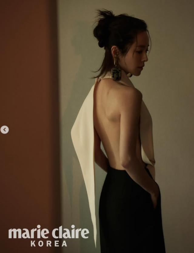 공개된 사진 속 한지민은 우리가 알던 ‘지민신(神)’이 아니었다. 그녀는 척추 라인과 날개뼈가 적나라하게 드러나는 과감한 의상을 입고 카메라를 응시했다. 소위 ‘뼈말라(뼈가 보일 정도로 마른 몸매)’에 가까운 슬림한 실루엣이지만, 그 안에서 뿜어져 나오는 아우라는 결코 가볍지 않다.