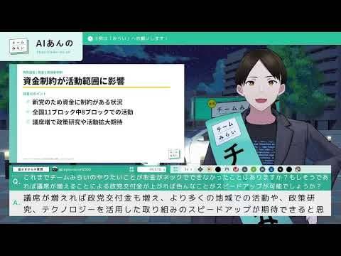 안노는 평소 “일본이라는 국가의 운영 체제가 낡았으니 버그를 수정하고 업데이트해야 한다”고 말해왔다. 정치를 ‘권력 투쟁’이 아닌 ‘시스템 설계’의 영역으로 본 그의 정치관은 당 운영 방식에도 투영됐다. 이번 선거에서 팀 미라이가 보인 모습은 기성 정당과 여러모로 달랐다. 선거 때마다 등장하는 ‘타도 자민당’ 같은 거창한 정치 슬로건은 배제했다.