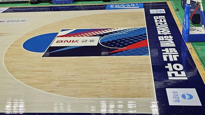 우리은행은 선수들의 유니폼에만 ‘TEAM KOREA’를 활용하지 않는다. 아산이순신체육관 코트에도 ‘TEAM KOREA’를 박았다. 베이스 라인 부근에는 ‘TEAM KOREA’ 응원 멘트를, 페인트 존에는 태극 문양과 비슷한 마크를 되새겼다.